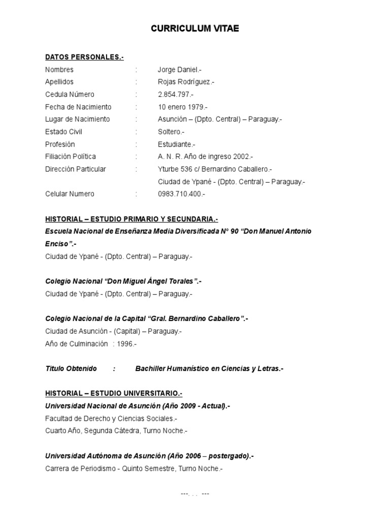 Modelo De Curriculum Vitae En Blanco De Paraguay - Formato Basico Lesal / Cv único e atemporal para baixar em formato word e personalizar segundo a oferta a que você queira se candidatar.