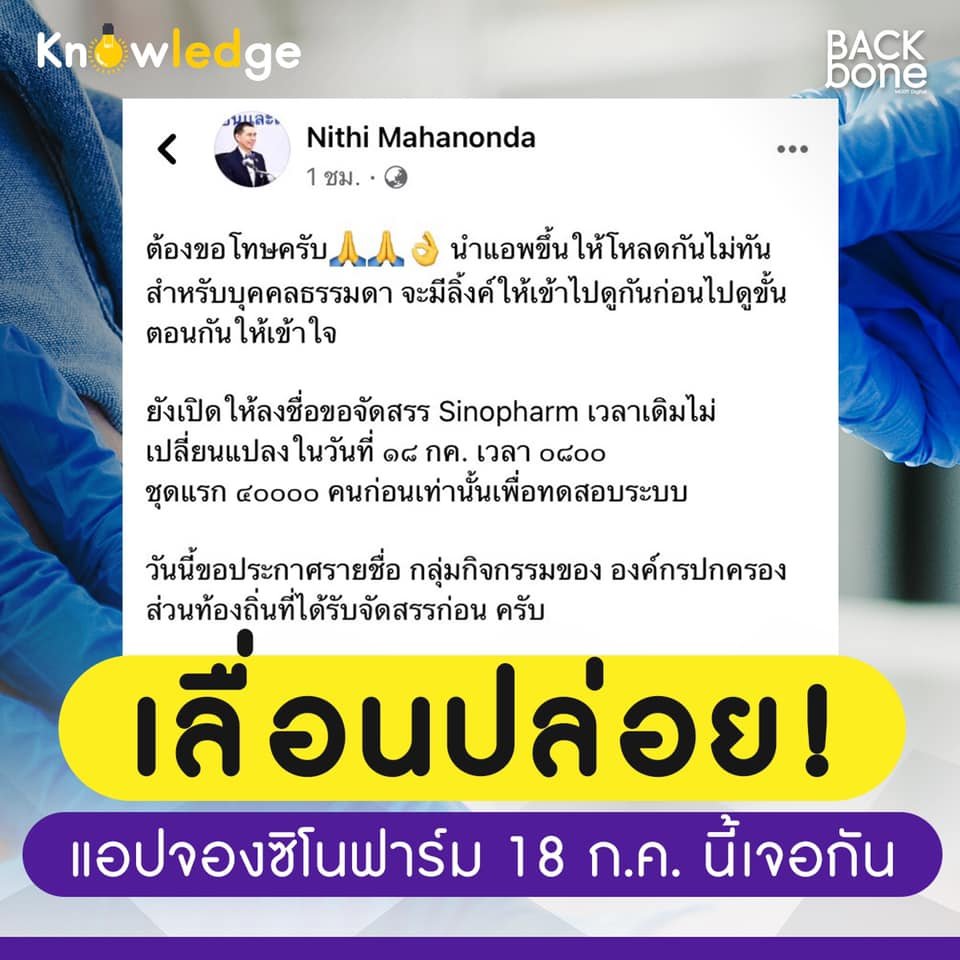 Cra sinop app แอปจองวัคซีนซิโนฟาร์ม คืบหน้าล่าสุดหมอนิธิแจ้งเลื่อนให้ดาวน์.